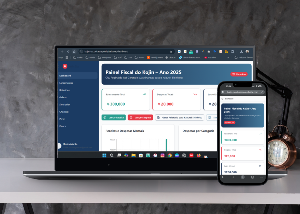 Um sistema pensado para dekasseguis: você lança receitas e despesas, gera relatório para o kakutei shinkoku e fala com contador parceiro, tudo em um só hub digital.